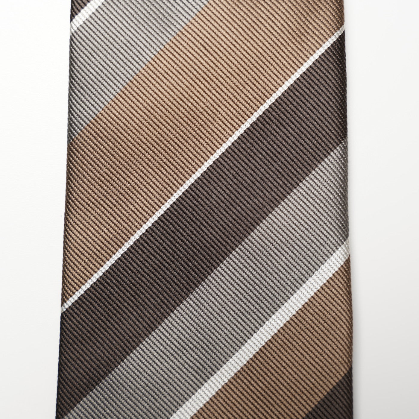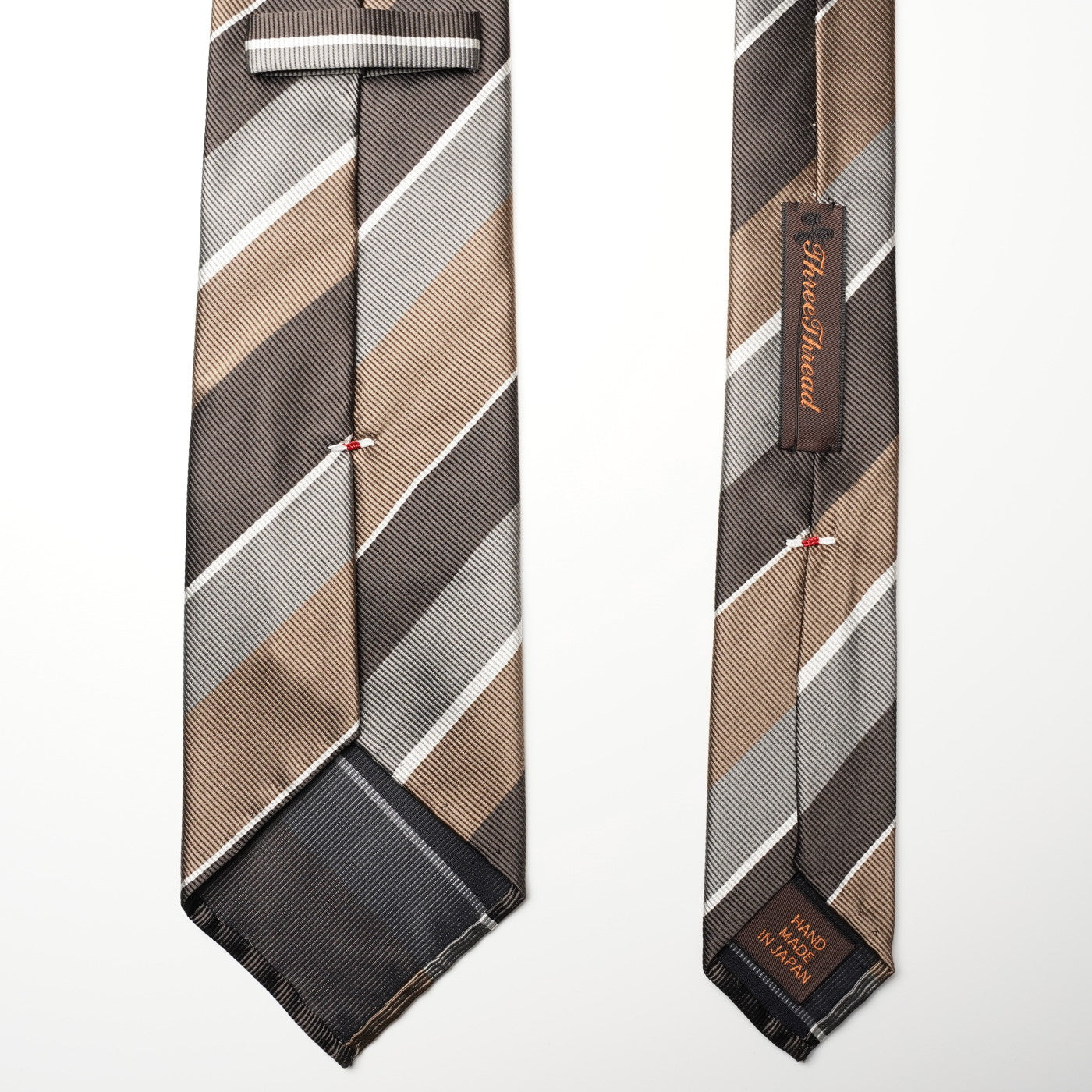 ・レップストライプシルクタイ 上質なシルクにグレージュを基調としたニュアンスカラーを織り込んだ、ThreeThreadの新作ストライプコレクション。グレージュ特有の柔らかさと品格が、落ち着いた印象と洗練された華やかさを同時に演出します。 ネイビー、チャコールグレー、ベージュ系スーツと好相性。毎日のタイドアップに洗練を加える一本です。 |