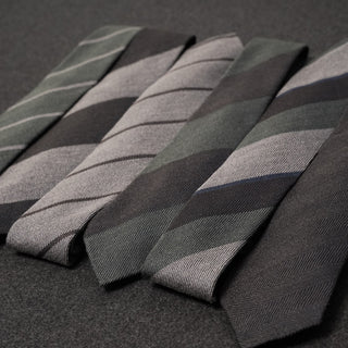レップ サテン 三段ストライプネクタイ 丹後産 ハンドロール加工 Triple block stripe silk tie(GR)