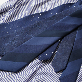 アメリカ発祥のアイビールックから着想を得たアイビースタイルタイでは、右下がりの米国式を取り入れています。